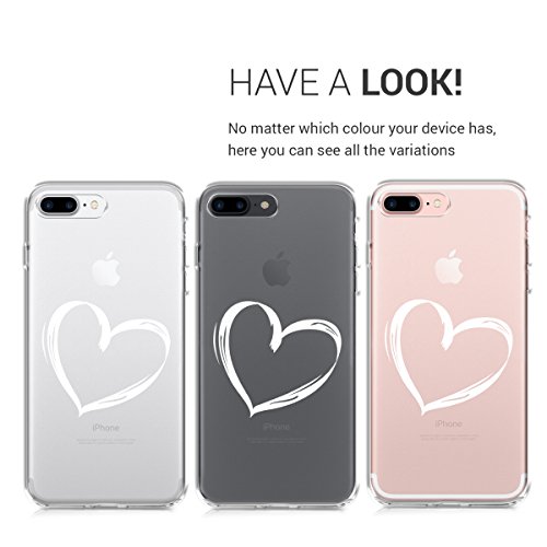 Kwmobile Custodia Compatibile con Apple iPhone 7 Plus / 8 Plus - Cover Silicone TPU - Protezione Back Case - Cuore Bianco/Trasparente