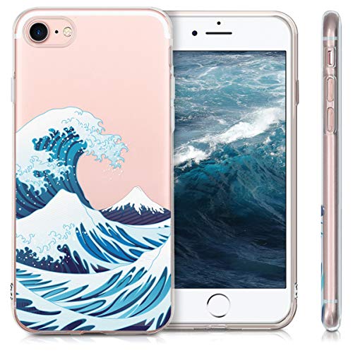 Kwmobile Custodia Compatibile con Apple iPhone SE (2022) / iPhone SE (2020) / iPhone 8 / iPhone 7 - Cover Silicone TPU - Protezione Back Case - New Japanese Wave blu/bianco/trasparente