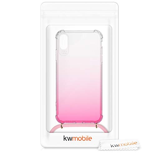 Kwmobile Custodia Compatibile con Apple iPhone XS Max Cover - Back Case in Silicone TPU - Protezione Smartphone con Cordino - fucsia/trasparente