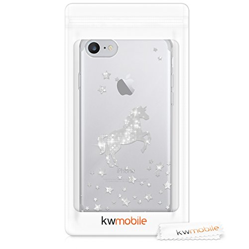 Kwmobile Custodia Compatibile con Apple iPhone SE (2022) / SE (2020) / 8/7 - Cover Silicone TPU - Protezione Posteriore - Unicorno Stellato Argento/Trasparente