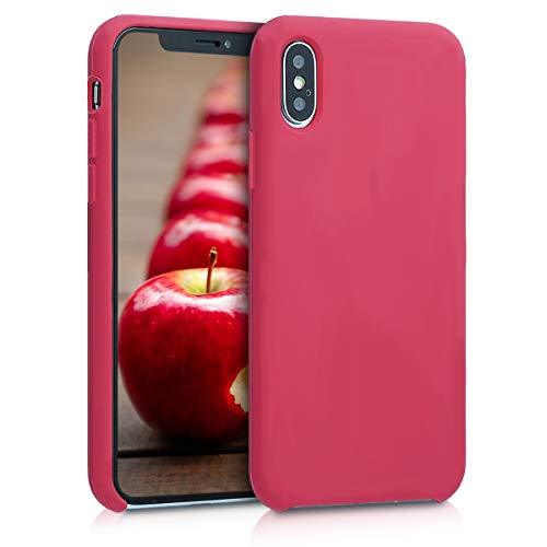 Kwmobile Custodia Compatibile con Apple iPhone XS - Cover in Silicone TPU - Back Case per Smartphone - Protezione Gommata Fucsia Ciliegia/Rosso