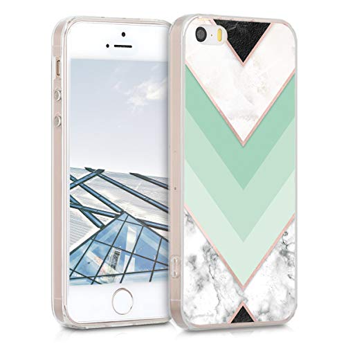 Kwmobile Custodia Compatibile con Apple iPhone SE (1.Gen 2016) / 5 / 5S - Cover in silicone TPU Trasparente - Back Case Marmo menta/oro rosa/bianco