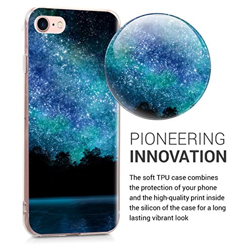 Kwmobile Custodia Compatibile con Apple iPhone 7/8 / SE (2020) - Cover in Silicone TPU Trasparente - Back Case Acqua e Luna Blu/Nero