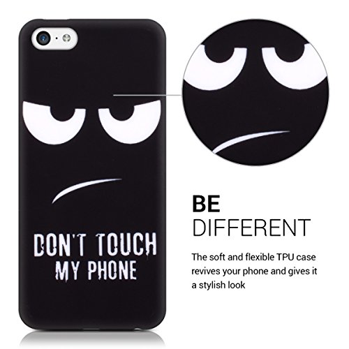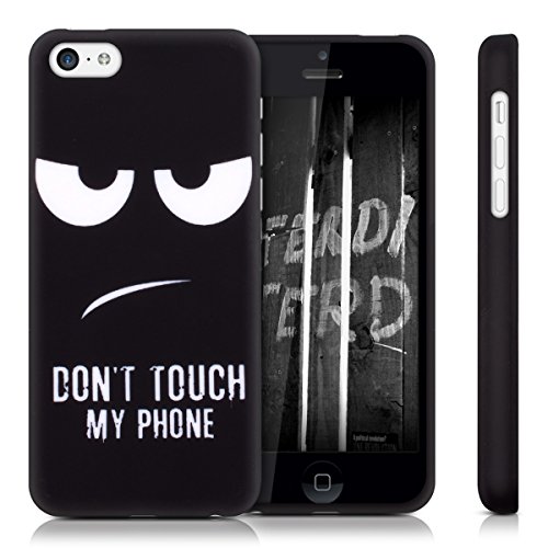 Kwmobile Custodia Compatibile con Apple iPhone 5C - Cover in Silicone TPU Trasparente - Back Case Don't Touch My Phone Bianco/Nero