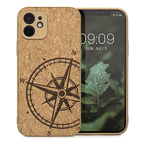 Kwmobile Custodia compatibile con Apple iPhone 12 - Cover in Sughero - Bumper Antiurto in Silicone TPU Gommato - Protezione Bussola vintage