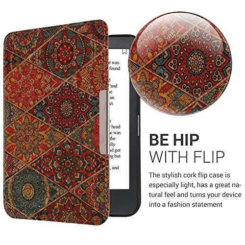 Kwmobile Custodia compatibile con Kobo Clara HD - Cover a libro per eReader - Flip Case Protezione per e-book Reader in sughero - Maioliche Marocchine fucsia/rosso/blu