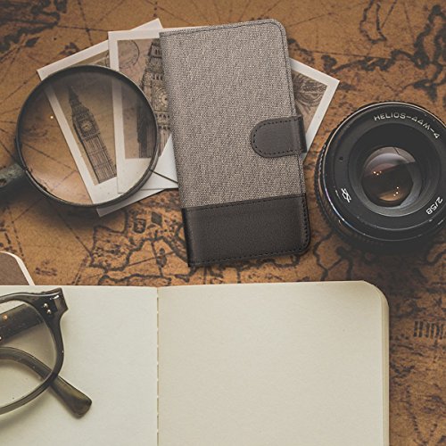 Kwmobile Custodia compatibile con LG Q6 / Q6+ - Cover a portafoglio porta carte tessuto simil pelle stand - Case magnetica