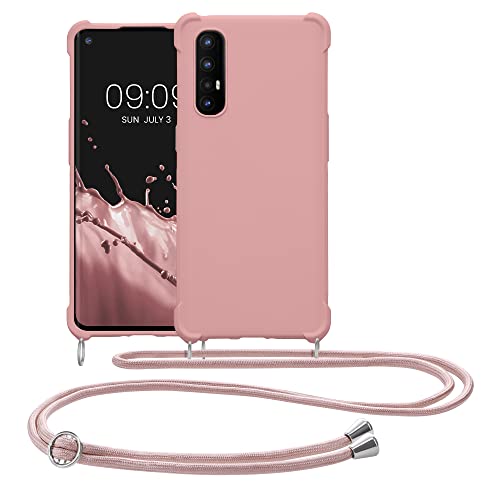 Kwmobile Custodia Compatibile con Oppo Find X2 Neo Cover - Back Case in Silicone TPU - Protezione Smartphone con Cordino - madre perla