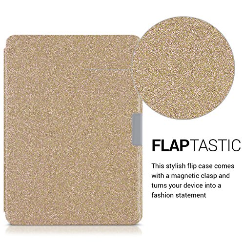 Kwmobile Custodia compatibile con Kobo Aura Edition 2 - Cover a libro per eReader - Flip Case per e-book Reader - Brillantini oro
