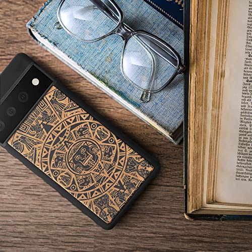 Kwmobile Custodia Compatibile con Google Pixel 6 Pro Cover - Back Case in Legno con Bumper in Silicone TPU - Ornamento Tribale marrone chiaro/nero