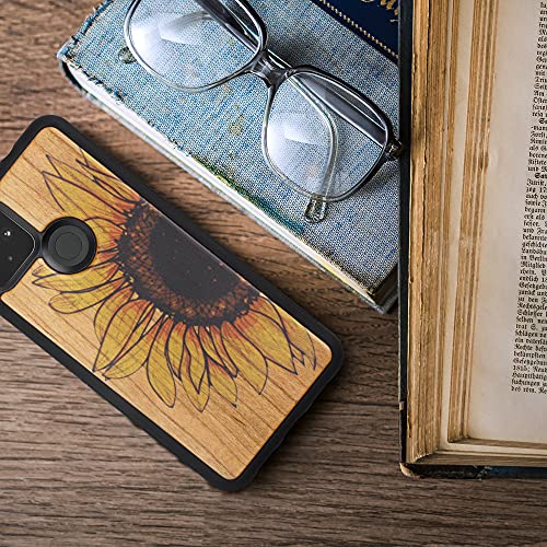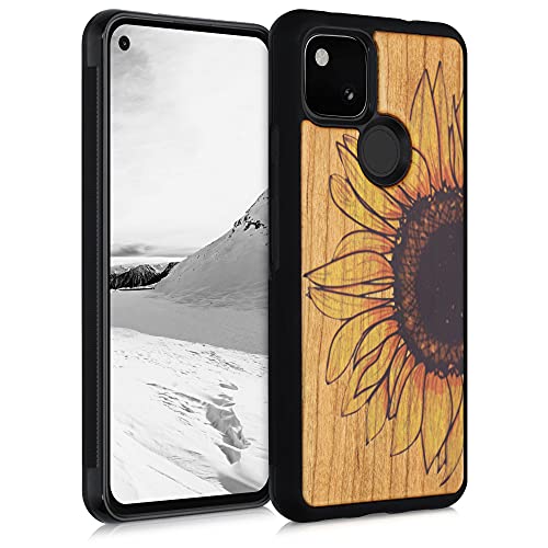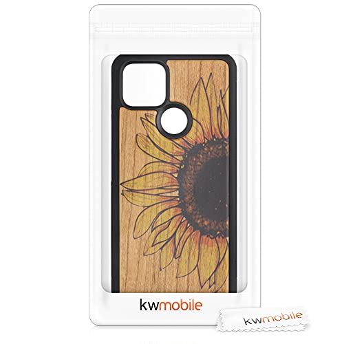 Kwmobile Custodia Compatibile con Google Pixel 4a 5G Cover - Back Case in Legno con Bumper in Silicone TPU - Sunflower giallo/marrone scuro/marrone chiaro