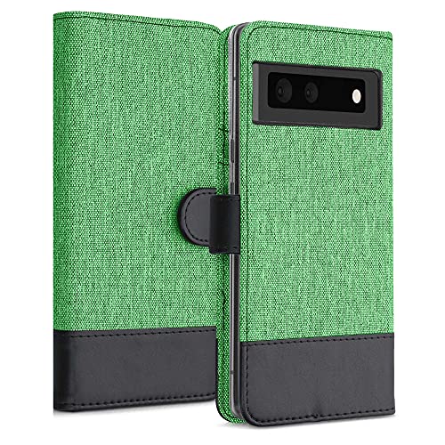 Kwmobile Custodia Compatibile con Google Pixel 6 Cover Portafoglio - Case Chiusura Magnetica Portacarte Tessuto Similpelle menta/nero