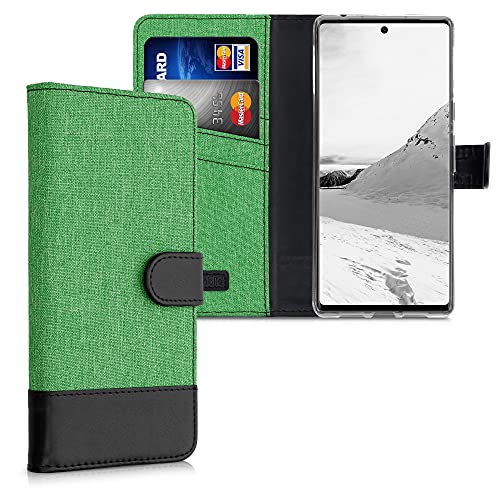 Kwmobile Custodia Compatibile con Google Pixel 6 Pro Cover Portafoglio - Case Chiusura Magnetica Portacarte Tessuto Similpelle menta/nero