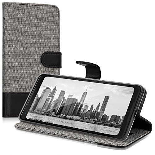 Kwmobile Custodia Compatibile con Google Pixel 2 XL Cover Portafoglio - Case Chiusura Magnetica Portacarte Tessuto Similpelle grigio/nero