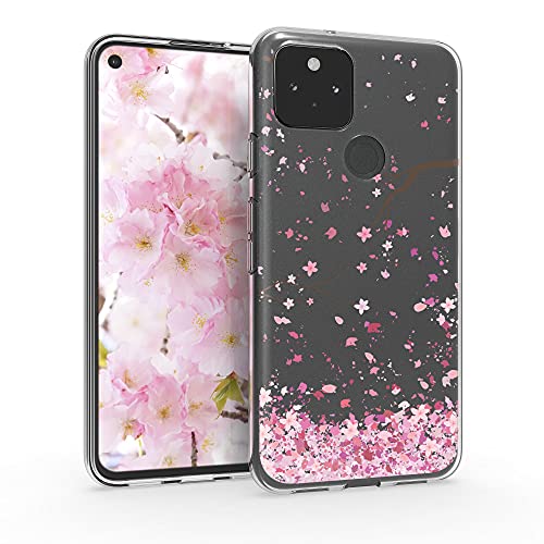 Kwmobile Custodia Compatibile con Google Pixel 5 - Cover Silicone TPU - Protezione Back Case - Pioggia di Petali Rosa/Marrone Scuro/Trasparente