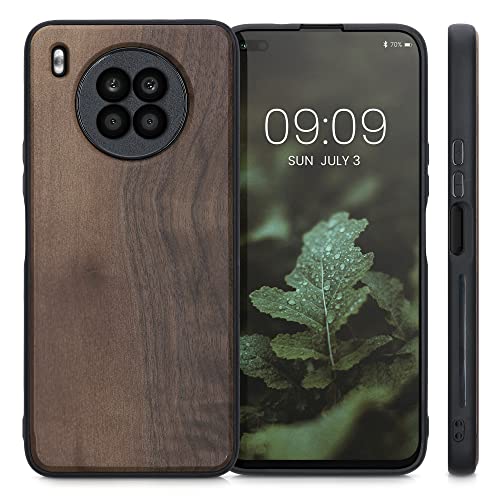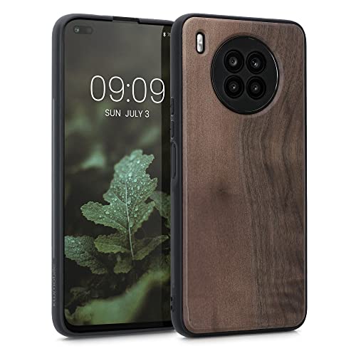 Kwmobile Custodia Compatibile con Honor 50 Lite Cover - Protezione in Legno per Smartphone - Back Case con Bumper in Silicone TPU - marrone scuro