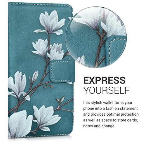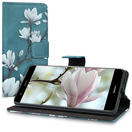 Kwmobile Custodia Compatibile con Huawei P10 Lite Cover - Portafoglio Pelle Sintetica con Chiusura Magnetica - Porta Carte Magnolie