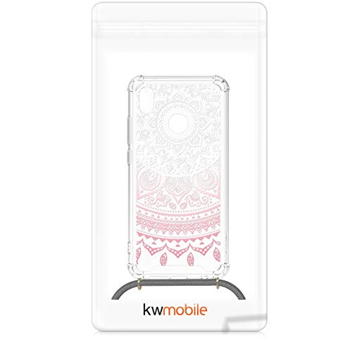 Kwmobile Custodia Compatibile con Huawei P20 Lite Cover - Back Case in Silicone TPU - Protezione Smartphone con Cordino - rosa/bianco/trasparente