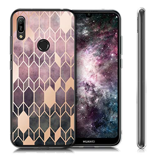 Kwmobile Custodia Compatibile con Huawei Y6 (2019) - Cover in silicone TPU Trasparente - Back Case Geometric Art fucsia/oro rosa