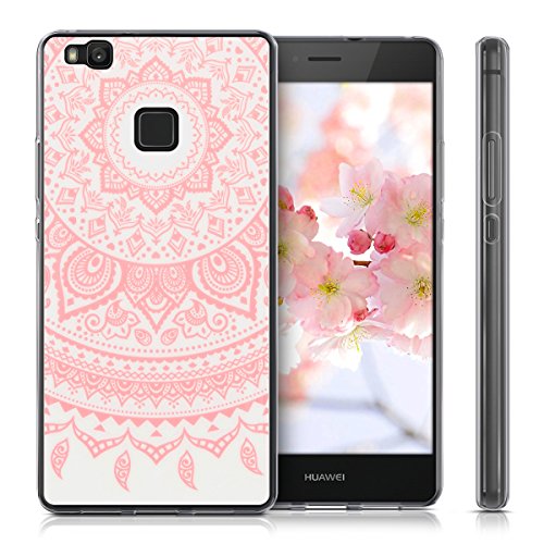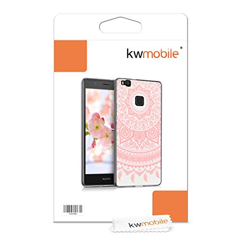 Kwmobile Custodia Compatibile con Huawei P9 Lite - Cover in Silicone TPU Trasparente - Back Case Sole Indiano Rosa/Bianco