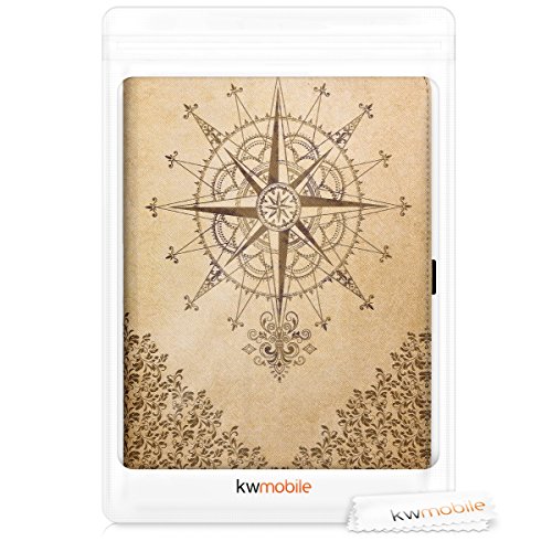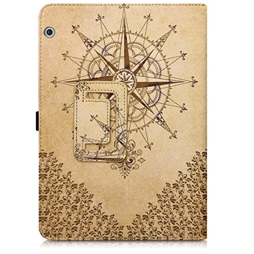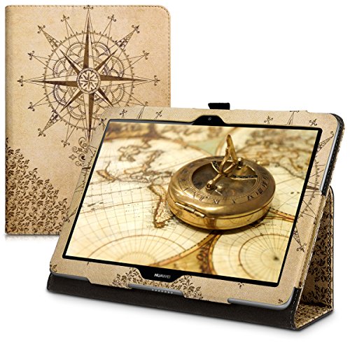Kwmobile Custodia Compatibile con Huawei MediaPad T3 10 - Custodia Cover Tablet con Supporto - Copertina in Pelle PU Smart Case con Stand - Compasso Barocco Marrone Scuro/Beige