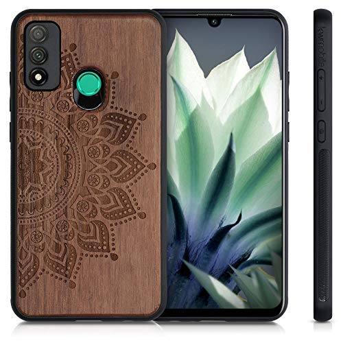 Kwmobile Custodia Compatibile con Huawei P Smart (2020) Cover - Back Case in Legno con Bumper in Silicone TPU - Sole Marrone Scuro