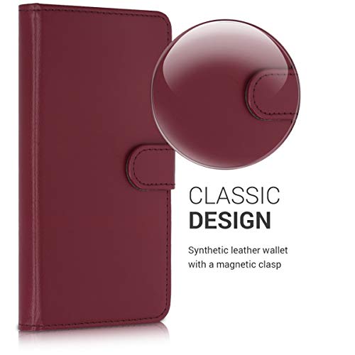 Elegante effetto pelle: la custodia a libro di colore bordeaux è realizzata in resistente ecopelle e protegge il telefono da sporco, graffi e altri agenti esterni.