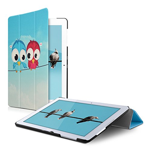 Kwmobile Custodia Compatibile con Acer Iconia One 10 (B3-A20) - Smart Cover per Tablet in Pelle PU - Copertina Ultra Sottile con Stand - Uccello Comic Blu/Rosso/Blu Chiaro