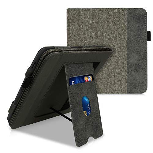 Kwmobile Custodia Compatibile con Kobo Libra H2O - Cover in Tela con Chiusura Magnetica Autosleep Leggio Cinturino Anticaduta Slot Portatessere