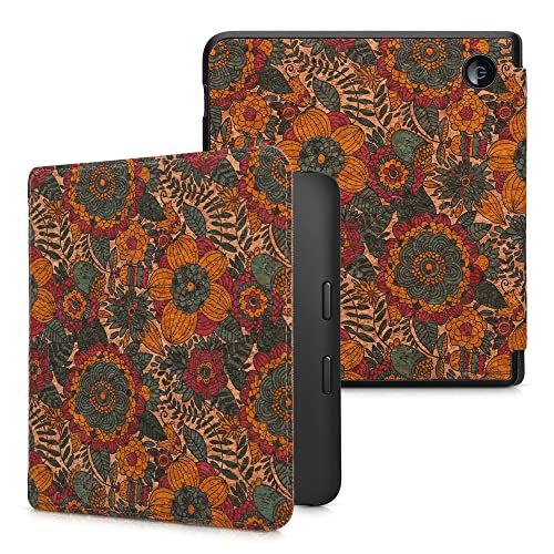 Kwmobile Custodia compatibile con Kobo Libra 2 - Cover a libro per eReader - Flip Case Protezione per e-book Reader in sughero - Arazzo Floreale arancione/verde/rosso