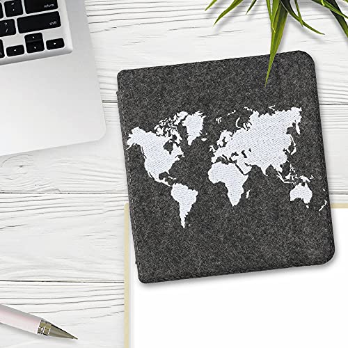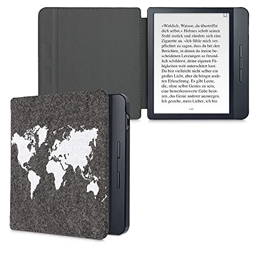 Kwmobile Custodia compatibile con Kobo Libra H2O - Cover a libro per eReader - Protezione in feltro - Flip Case - Sagoma Mondo bianco/grigio scuro