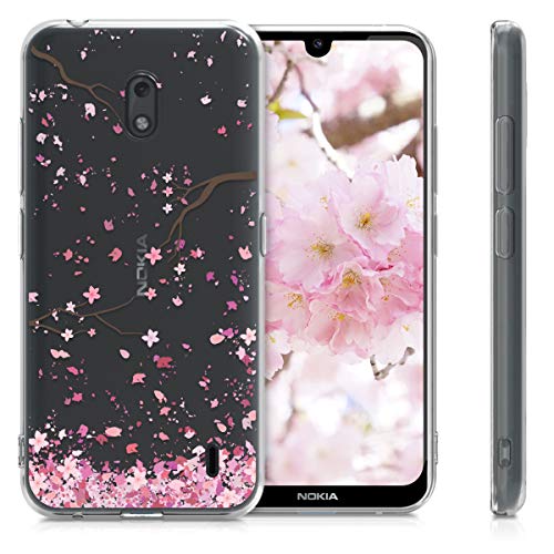 Kwmobile Custodia Compatibile con Nokia 2.2 - Cover Silicone TPU - Protezione Back Case - Pioggia di petali rosa/marrone scuro/trasparente