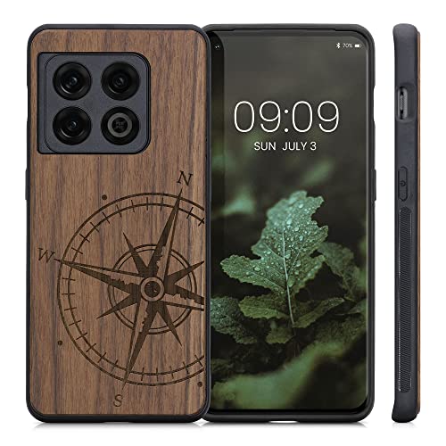 Kwmobile Custodia Compatibile con OnePlus 10 Pro 5G Cover - Back Case in Legno con Bumper in Silicone TPU - Bussola vintage marrone scuro