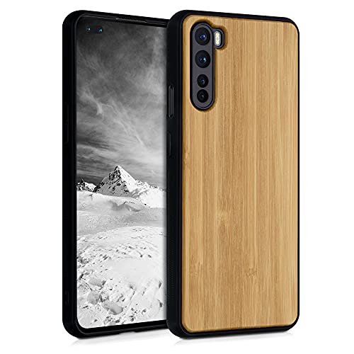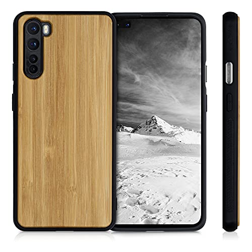 Kwmobile Custodia Compatibile con OnePlus Nord Cover - Protezione in Legno per Smartphone - Back Case con Bumper in Silicone TPU - Marrone Chiaro