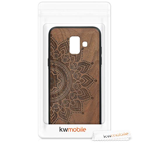 Kwmobile Custodia Compatibile con Samsung Galaxy A6 (2018) Cover - Back Case in Legno con Bumper in Silicone TPU - Sole marrone scuro