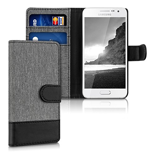 Kwmobile Custodia compatibile con Samsung Galaxy A3 (2015) - Cover a portafoglio porta carte tessuto simil pelle stand - Case Custodia magnetica