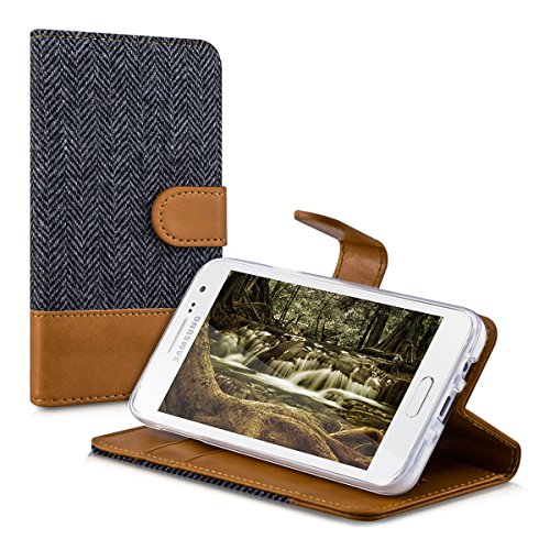 Kwmobile Custodia Compatibile con Samsung Galaxy A3 (2015) - Cover a Portafoglio Porta Carte Tessuto Simil Pelle Stand - Case Magnetica