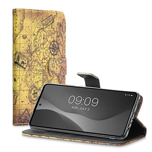 Kwmobile Custodia Compatibile con Samsung Galaxy A52 / A52 5G / A52s 5G Cover - Portafoglio Pelle Sintetica con Chiusura Magnetica - Porta Carte Mappamondo Antico