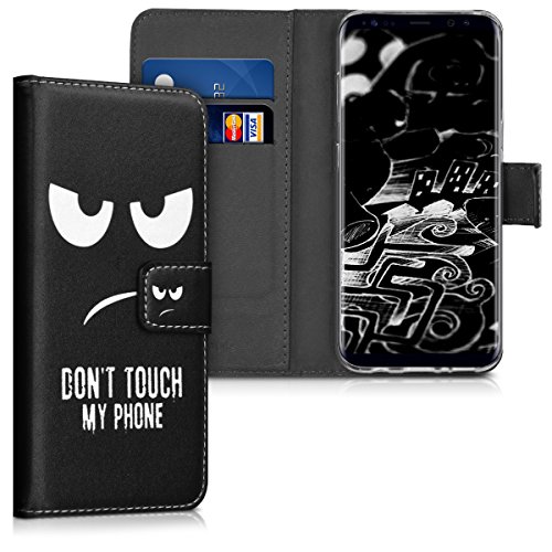 Kwmobile Custodia Compatibile con Samsung Galaxy S8 - Cover Portafoglio Pelle Sintetica con Chiusura Magnetica - Porta Carte Don't touch my phone