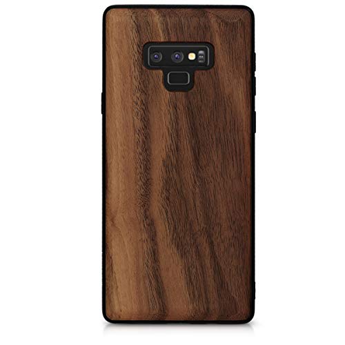 Kwmobile Custodia Compatibile con Samsung Galaxy Note 9 Cover - Protezione in Legno per Smartphone - Back Case con Bumper in Silicone TPU - Marrone Scuro