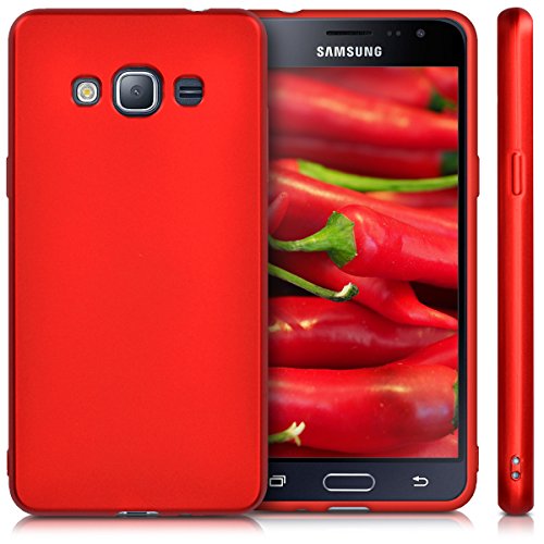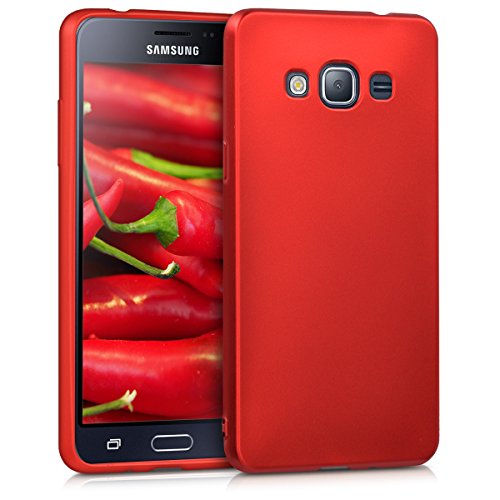 Kwmobile Custodia Compatibile con Samsung Galaxy J3 (2016) DUOS - Cover Silicone TPU Effetto Metallizzato - Protezione Back Case Morbida Rosso Scuro Metallizzato