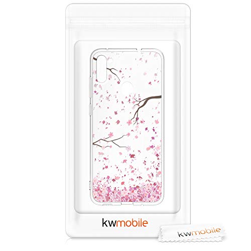 Kwmobile Custodia Compatibile con Samsung Galaxy M11 - Cover Silicone TPU - Protezione Back Case - Pioggia di petali rosa/marrone scuro/trasparente