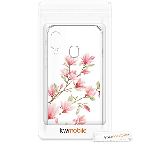 Kwmobile Custodia Compatibile con Samsung Galaxy A20e - Cover Silicone TPU - Protezione Back Case - Magnolie Rosa/Bianco/Trasparente
