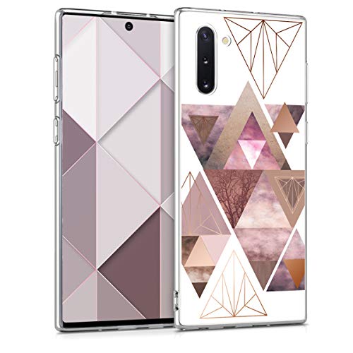 Kwmobile Custodia Compatibile con Samsung Galaxy Note 10 - Cover in silicone TPU Trasparente - Back Case Fantasia triangolare rosa/oro rosa/bianco