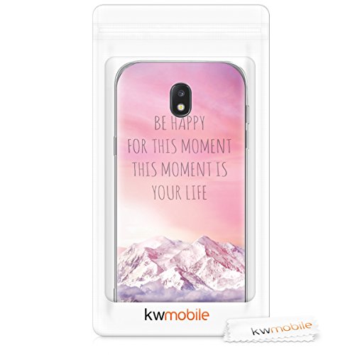Kwmobile Custodia Compatibile con Samsung Galaxy J5 (2017) DUOS - Cover in Silicone TPU Trasparente - Back Case Be Happy Moment Rosa/Viola/Corallo