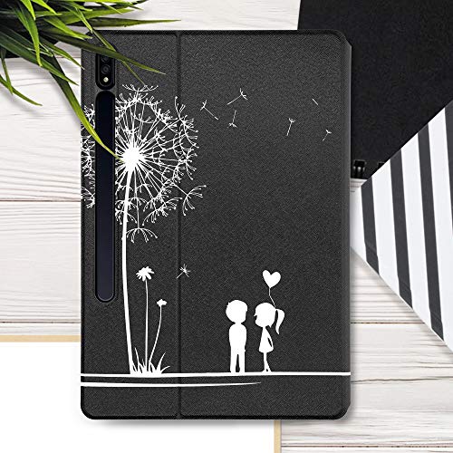 Kwmobile Custodia compatibile con Samsung Galaxy Tab S7 Plus/Tab S7 FE - Custodia Cover Tablet con supporto - Copertina in pelle PU Smart Case con Stand - Amore bianco/nero