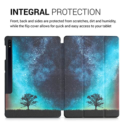 Kwmobile Custodia Compatibile con Samsung Galaxy Tab S7 Plus/Tab S7 Fe - Smart Cover per Tablet in Pelle PU - Copertina Ultra Sottile con Stand - Natura e Spazio Blu/Grigio/Nero