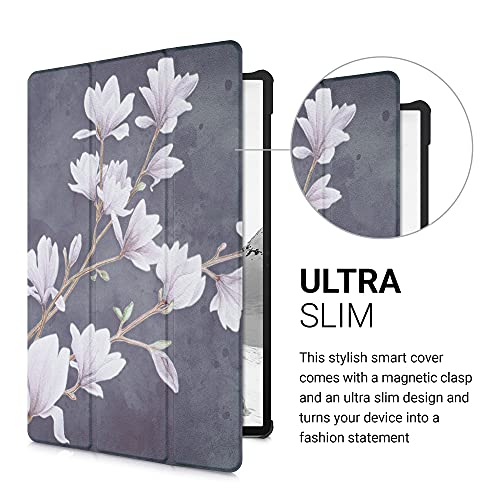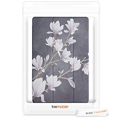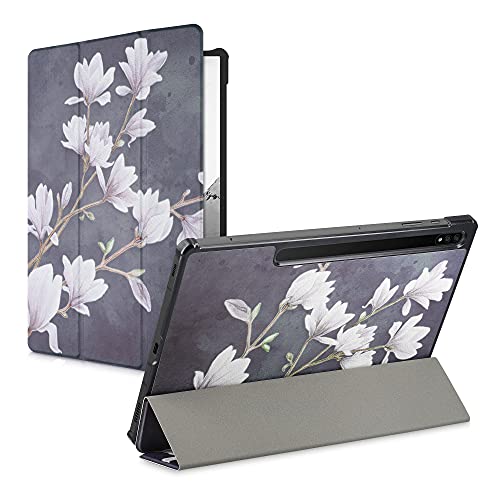 Kwmobile Custodia compatibile con Samsung Galaxy Tab S7 Plus/Tab S7 FE - Smart Cover per Tablet in pelle PU - Copertina ultra sottile con Stand - Magnolie marrone grigio/bianco/grigio scuro