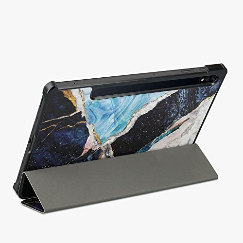 Kwmobile Custodia compatibile con Samsung Galaxy Tab S8 - Smart Cover per Tablet in pelle PU - Copertina ultra sottile con Stand - Marmo oro/bianco/blu