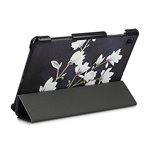 Kwmobile Custodia compatibile con Samsung Galaxy Tab S6 Lite - Smart Cover per Tablet in pelle PU - Copertina ultra sottile con Stand - Magnolie marrone grigio/bianco/grigio scuro